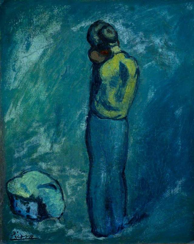 Họa sĩ Rococo người Pháp Jean-Antoine Watteau, thợ in khắc gỗ Nhật Bản Katsushika Hokusai, và bậc thầy người Tây Ban Nha Pablo Picasso trong Thời kỳ màu xanh của ông đều sử dụng màu này một cách phổ biến. Những bức tranh u ám của Picasso phản ánh thời kỳ trầm cảm của nghệ sĩ, đánh dấu khoảng thời gian ông sống trong cảnh tương đối nghèo đói và trải qua những xáo trộn về cảm xúc sau cái chết của người bạn thân và đồng nghiệp là họa sĩ Carlos Casagemas – người đã tự sát vào năm 1901. Thời kỳ màu xanh lam của Picasso đã giúp củng cố mối liên hệ của màu xanh lam với cảm giác tuyệt vọng và buồn bã: “màu xanh lam” tức “blue” trong tiếng Anh cũng có nghĩa là “nỗi buồn”.
