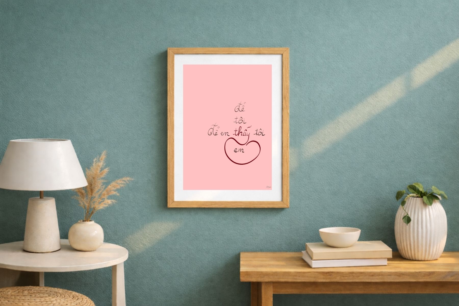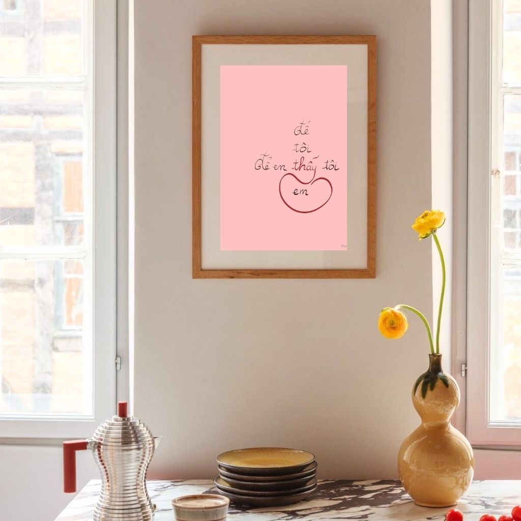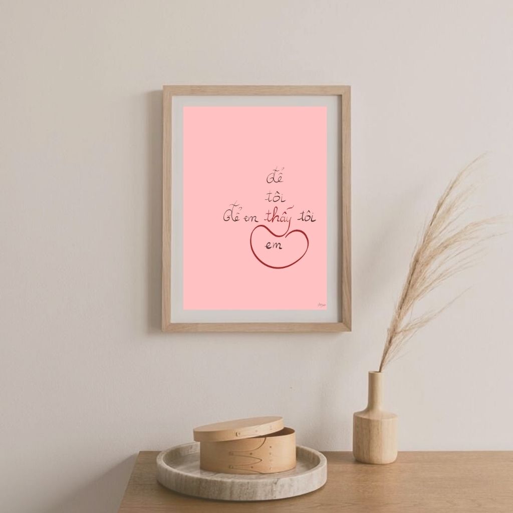 Kích thước gợi ý: A3 (Tạo sự tập trung vào chiều sâu của điểm nhìn) hoặc Postcard (Gửi tặng người mà bạn đã thực sự “thấy”). Tranh đi kèm khung gỗ thông tự nhiên để giữ nét thô mộc.