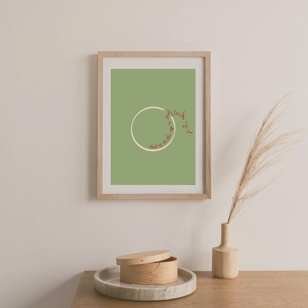 Kích thước gợi ý: A3 (Để cảm nhận rõ sự tinh tế của quá trình chuyển hóa) hoặc Postcard (Như một biểu tượng của sự mở lòng). Tranh đi kèm khung tối giản để tôn vinh sự thô mộc.